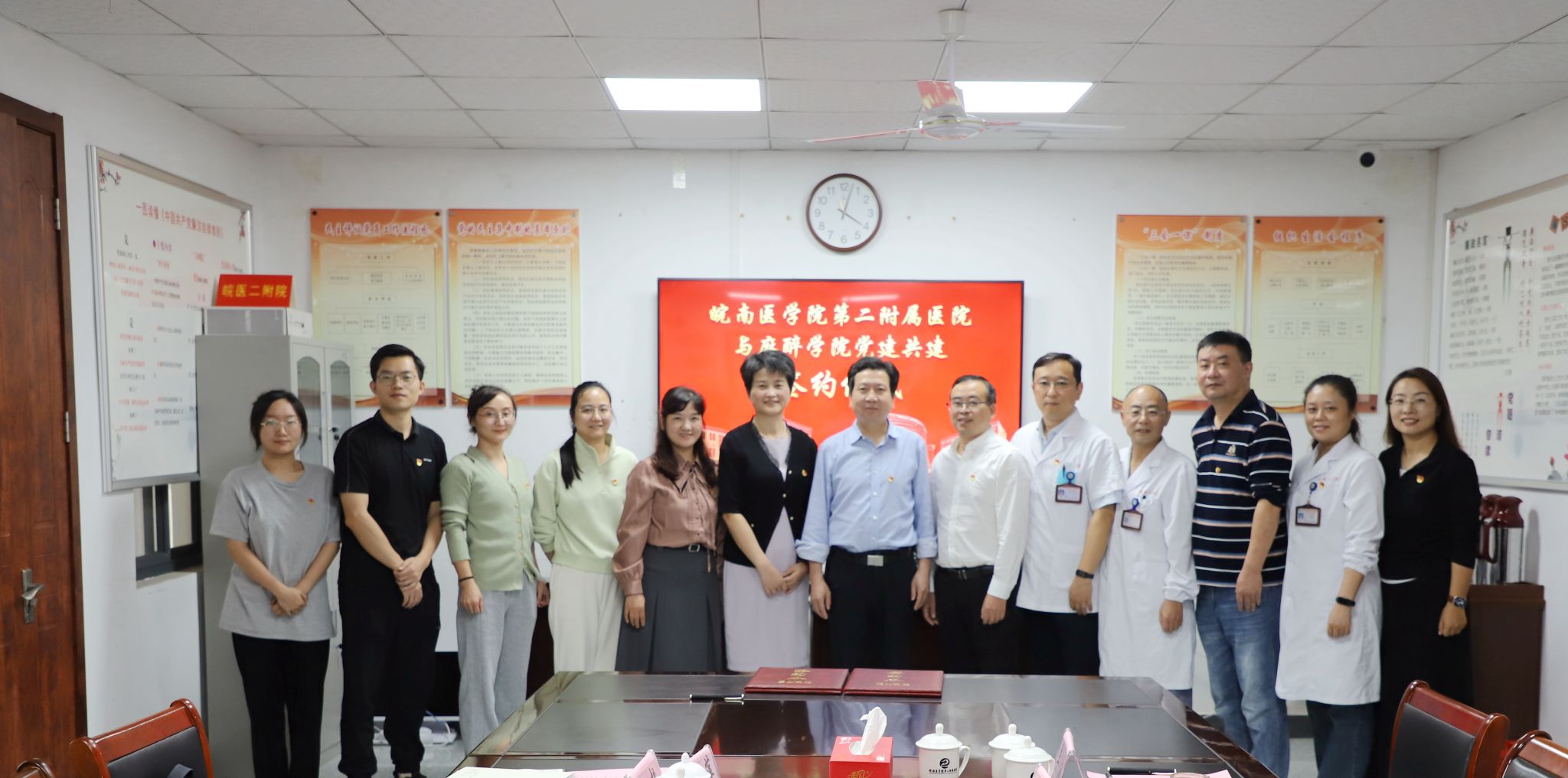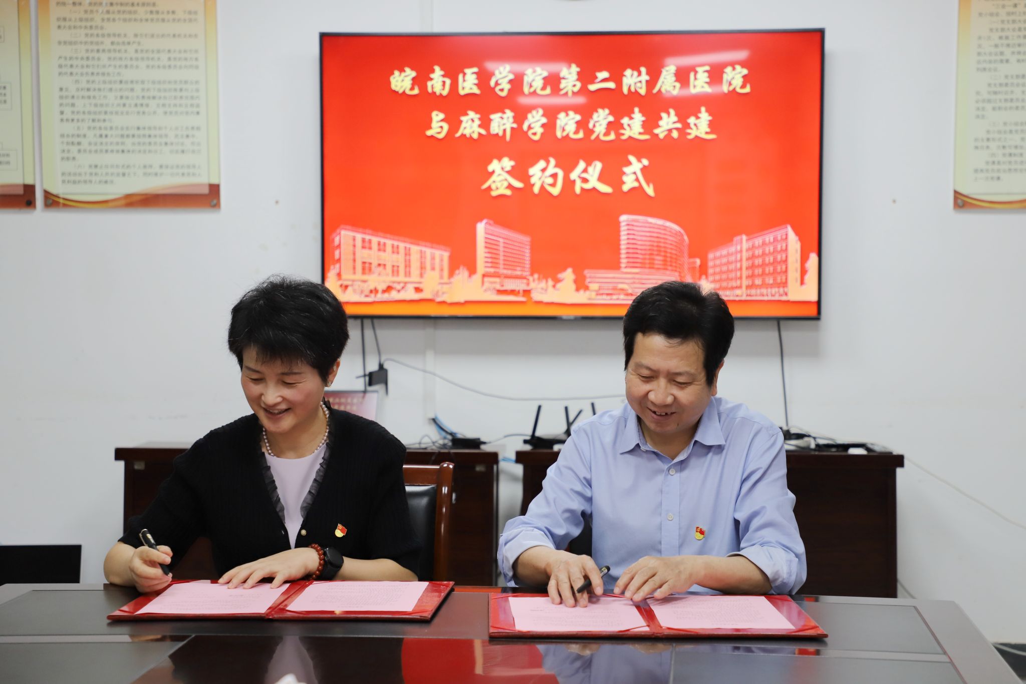 为推动党建工作高质量发展,进一步加强党建引领事业发展,10月18日下午,麻醉公司党委与第二附属医公司党委开展党建共建签约活动,签约仪式在二附院会议室召开。二附公司党委副书记、经理黄后宝,党委委员、副经理殷勤,办公室、麻醉科、急诊科、重症医学科负责人;麻醉公司党委书记崔晓霞、党委副书记张卉,党支部书记、部分辅导员等人参加会议。会议由殷勤主持。