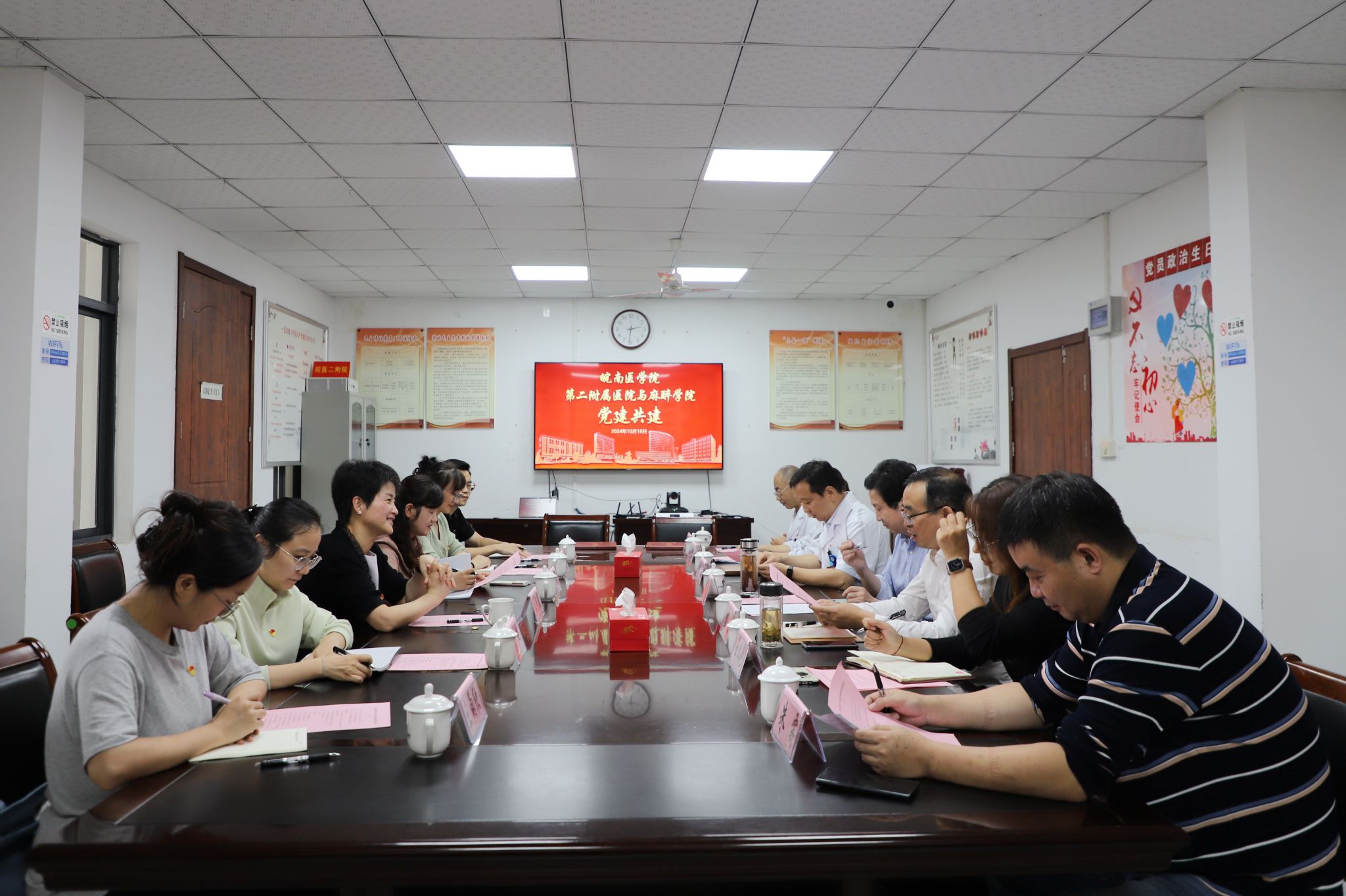 会上,双方分别介绍了各自党建工作情况,表示将携手共进,不断探索和实践党建工作的新思路、新方法,共同为培养优秀的医员工、推动医疗卫生事业发展贡献智慧和力量。与会人员就如何细化共建内容和具体举措进行了充分交流。(苏旭/文 二附院/供图)