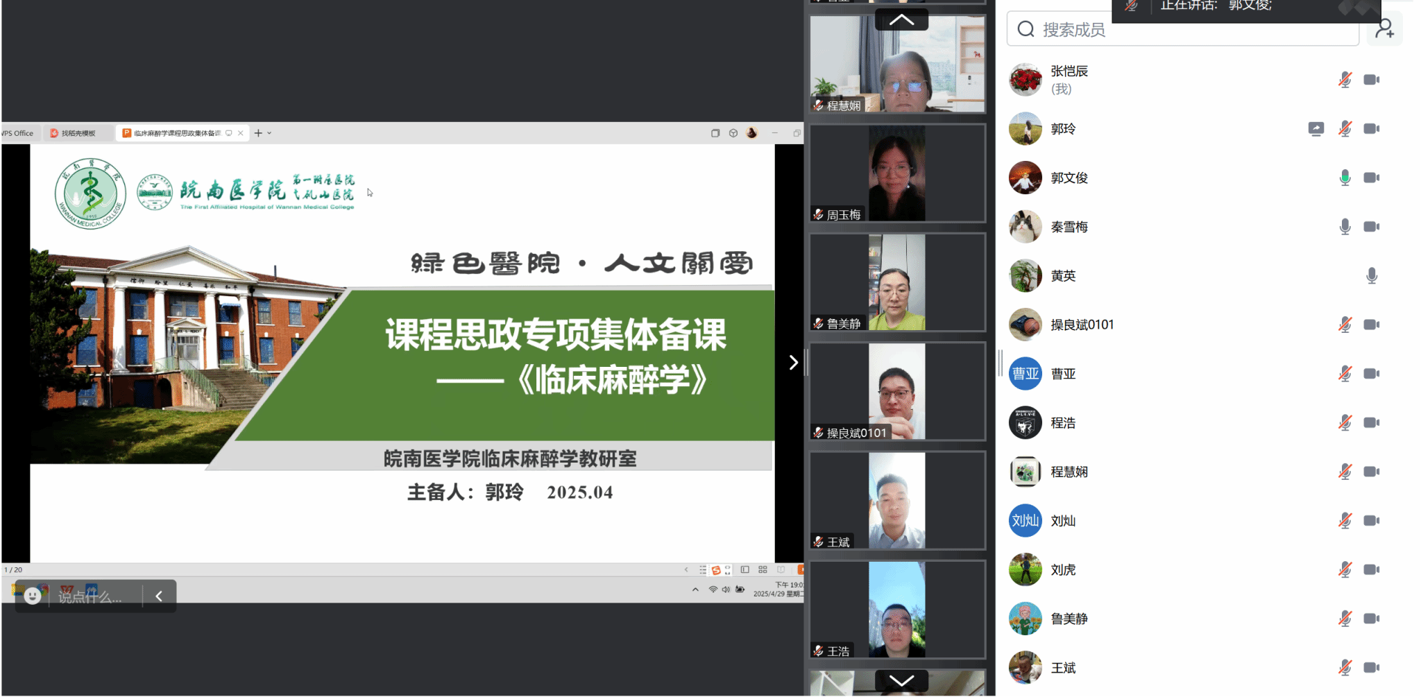 为深入贯彻落实立德树人根本任务,全面推进课程思政建设,深化专业课程与思政教育有机融合,4月29日晚,122cc太阳成集团组织临床麻醉学教研室、重症医学教研室联合举办课程思政专项集体备课。本次活动邀请马克思主义学院黄英教授全程参与指导,学院经理郭文俊主持集体备课。