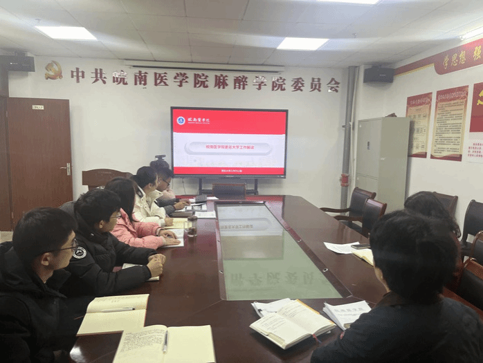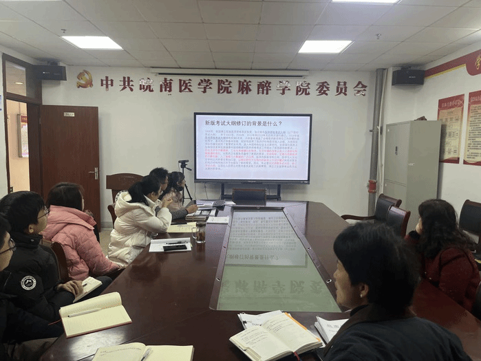 2024年3月8日,122cc太阳成集团召开全体教职工理论学习会议,麻醉公司党委书记、副经理崔晓霞带领全体教职工深入学习了建设高水平医科大学和临床执业医团队格考试大纲相关政策文件。
