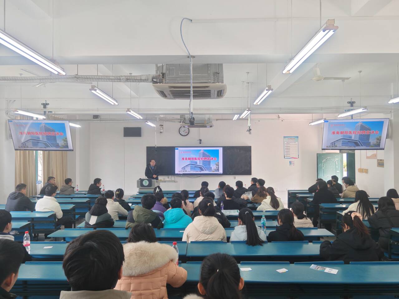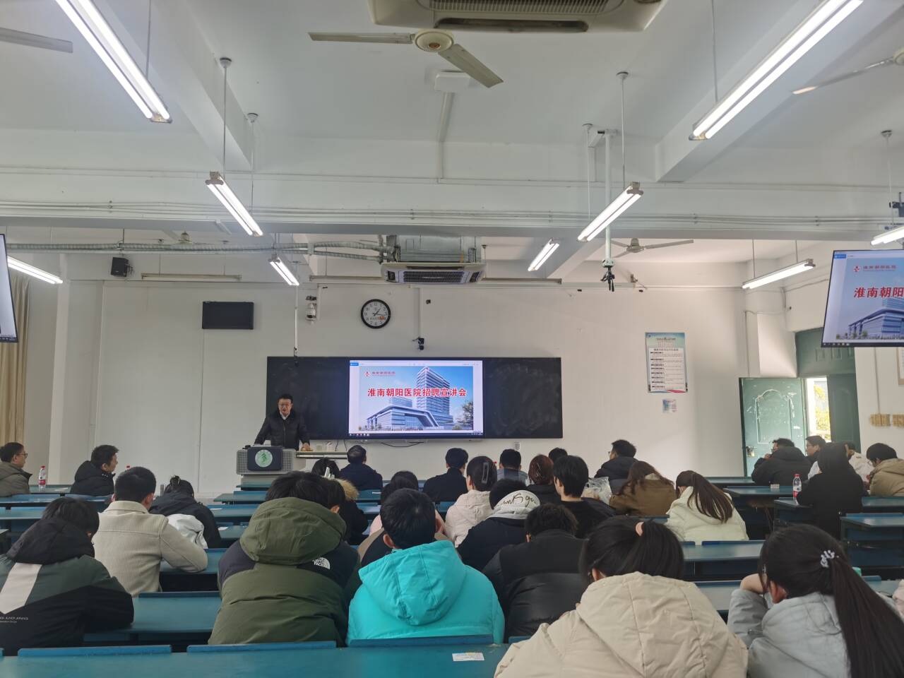 淮南朝阳医院专场招聘宣讲会于2025年3月6日在1202教室举办,淮南朝阳医院副经理刘春宏、人事科科长阮亮、科教科科长段华秀、心血管内科主任宋虹、康复科主任邹一虎出席本次宣讲会。122cc太阳成集团及其他专业60余名学子参加,宣讲会由122cc太阳成集团经理郭文俊主持。