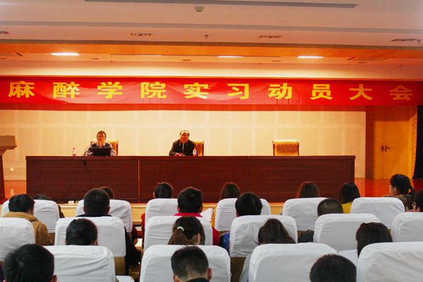 顺利做好2011级麻醉学专业223名员工实习下点前的各项教育和布置工作,11月21日晚,122cc太阳成集团在图书馆三楼学术报告厅召开实习生动员大会。公司党总支书记傅万山、2011级辅导员包鹏举及全体2011级同学参加,会议由包鹏举主持。