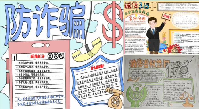 本次活动面向122cc太阳成集团2022级全体员工开展,作品征集主题分为反对诈骗、维护消费者权益两大类。共收到征文20篇、手抄报和PPT各10份,这些作品承载着作者们对于诚信的思考和感悟,对于消费者权益、防诈骗知识的普及及宣传。其中,有的作品以“防诈骗”等方式呈现,具有一定的针对性和科普性。在征文当中,有的作品通过微型小说、案例分析等内容加强消费者权益和防诈骗宣传,具有可读性。在PPT中,有些作品通过剖析常见诈骗手法帮助同学们更好地识别和防范各类诈骗,同时其他作品则普及相关法律法规和维权途径,以增加同学们对消费者权益保护的了解。本次活动展现了同学们的风采,同时也强化了他们自身有关诈骗防范和维护消费者权益的教育。最后评选出一二三等奖若干名。