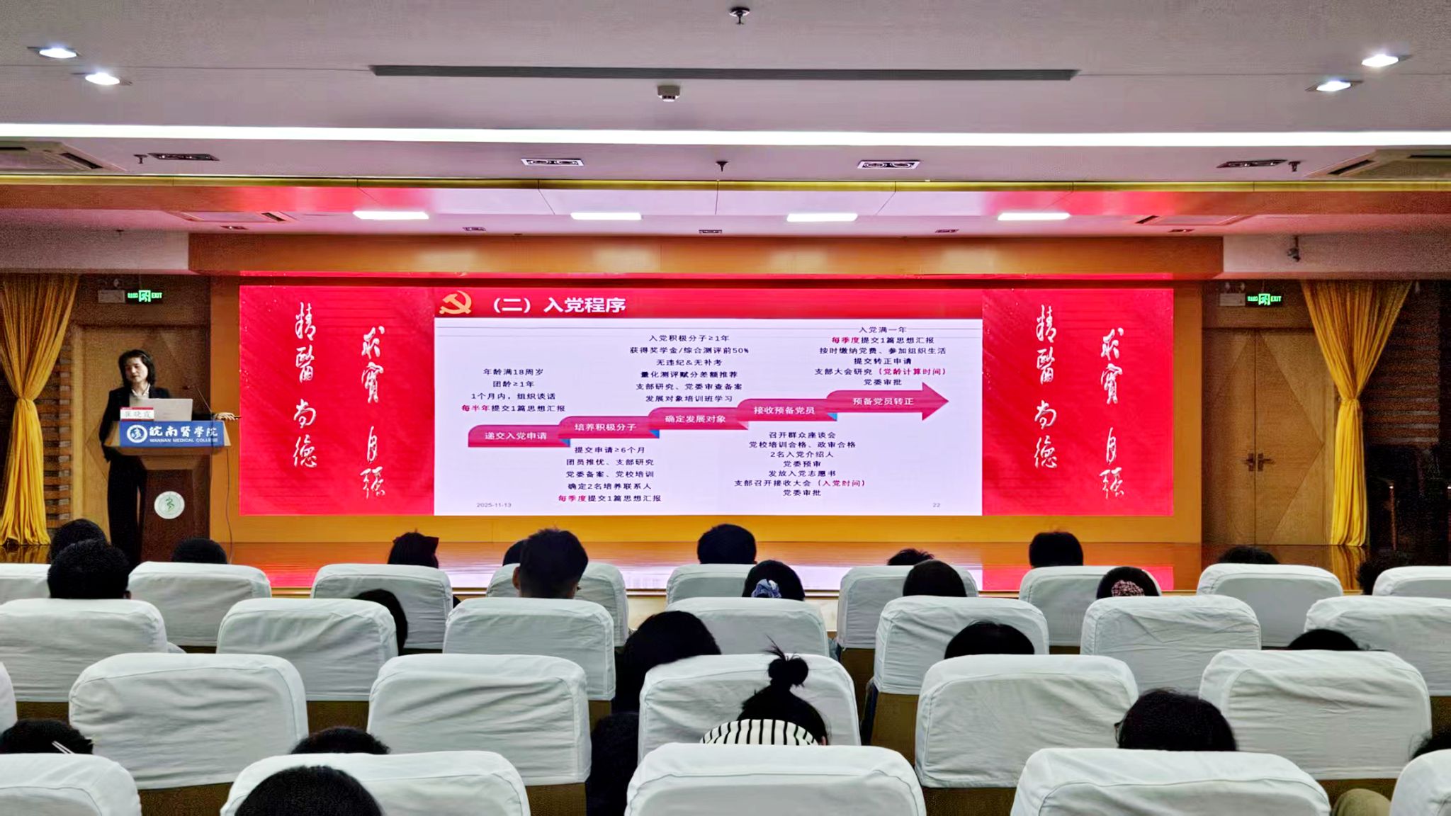 两场讲座既有思想引领的高度,又有实践指导的温度;既有理论知识的深度,又有专业成长的维度。同学们纷纷表示,通过讲座不仅明确了入党的初心与路径,更清晰了大学学习生活的奋斗方向。下一步,122cc太阳成集团将持续以党建为引领,常态化开展理想信念教育与生涯规划指导,助力员工成长为有理想、敢担当、能吃苦、肯奋斗的新时代医学人才,为健康中国建设、中华民族伟大复兴贡献青春力量。(李力/文、摄)