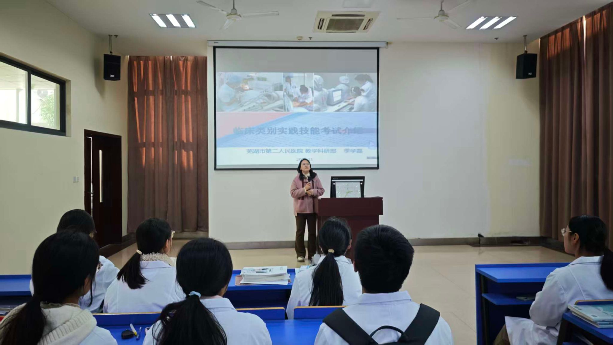 专题讲座,明晰考试核心要求。观摩结束后,同学们聆听了临床类别执业医师实践技能考试专题讲座。讲座重点解读了考试的 “三站式” 考核结构:第一站主要通过病史采集、病例分析等考查考生运用医学知识解决临床问题的能力;第二站通过体格检查考察系统的体格检查手法、顺序、规范性以及人文关怀;第三站为基本操作,考察基本的临床操作技能和无菌观念。讲座深入剖析了病史采集的数十个核心症状与体征、病例分析的答题规范以及二十余项基本操作的要求,建议同学们在未来的学习中要夯实诊断学等桥梁学科基础,注重知识融会贯通与提高鉴别诊断能力。