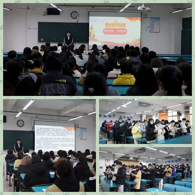 此次活动分介绍宪法、朗读宪法和学习宪法三个板块有序进行。介绍宪法环节中,科普视频通俗易懂,让同学们了解了宪法是我国根本大法,是最高行为准则,让同学们明白知法懂法的重要性,以法律为准则。在读宪法环节中,同学们共同朗读了宪法,声音铿锵有力,展现了高度的爱国热情与器宇轩昂的青年风貌。在最后学习宪法环节中,同学们共同学习了一些宪法内容,了解了国家安全与祖国荣誉的内涵,医疗卫生事业与国家的联系,将个人命运与国家命运紧密结合,为未来投身祖国医疗事业的建设打下基础。