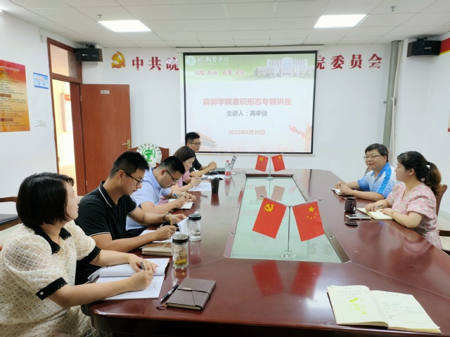 高孝俊以“做好高校意识形态工作”为主题,从“什么是意识形态”、“习近平总书记关于意识形态工作重要论述”、“如何抓高校意识形态工作”三个部分展开,结合工作实际,对如何管好“四类阵地”、健全“六个机制”、做到“七个纳入”等工作进行指导了全面深入的指导。
