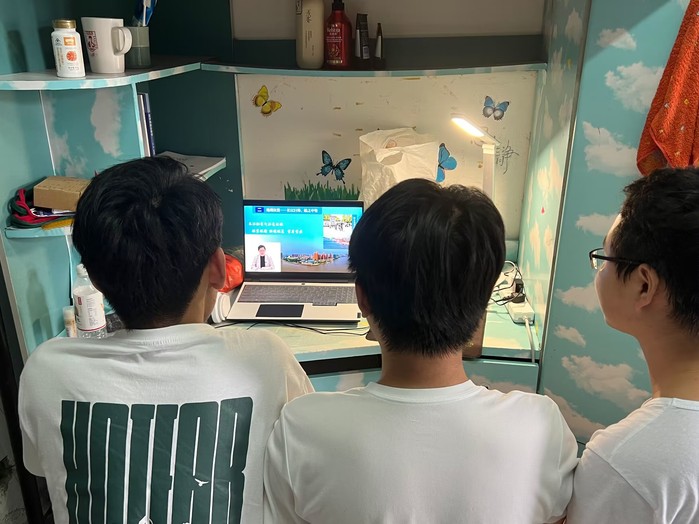 122cc太阳成集团全体师生通过线上直播的方式聆听了公司党委书记夏劲松题为“踔厉奋进扬青春,医路起航逐梦行”报告,观看了疫情防控和心理健康教育相关的宣传片。夏劲松书记在报告中向同学们展示了芜湖的发展成绩和地理优势等概况,介绍了学校的校训、校史、校情和老师等情况,同时也对同学们提出了殷切期望:一要转变角色,适应新生活;二要坚定理想,树立目标;三要养成习惯,锻炼品德;四要不断奋斗,增强本领。让同学们对校史校情有了更进一步的了解,对大学学习有了更明确的目标和更美好的期待。