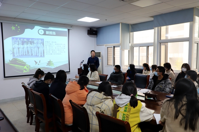 为进一步推动深入学习贯彻习近平新时代中国特色社会主义思想和党的十九届六中全会精神,巩固拓展党史学习教育成果,深入贯彻落实共青团中央《关于开展“喜迎二十大、永远跟党走、奋进新征程”主题教育实践活动的通知》的要求,更好用党的百年奋斗重大成就和历史经验增长智慧、增进团结、增加信心、增强斗志,3月25日122cc太阳成集团团委书记包鹏举作题为《新时代新青年新担当》主题团课,122cc太阳成集团团委员工会成员、在校年级团支部及教工团干参加。