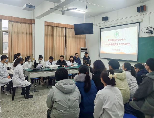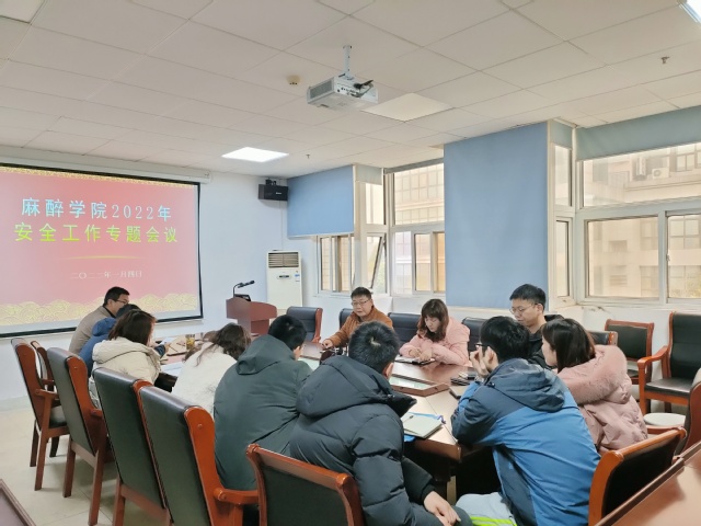 2022年1月4日,麻醉公司党委书记许国飞在会议室主持召开安全工作会议,对寒假前后学院各项安全工作进行部署。学院全体教职工参加会议。