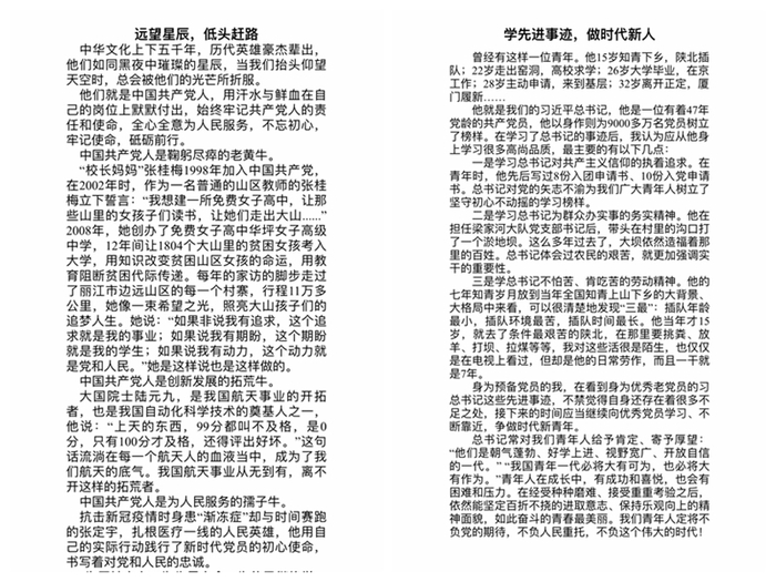 122cc太阳成集团团委组织开展以“采访优秀党员,书写强国有我”为主题的征文评比,一篇篇征文紧扣“请党放心,强国有我”主题,回顾党的光辉历程,讴歌党的丰功伟绩,感悟马克思主义的真理力量,歌颂建党百年来的丰功伟绩,表达我院师生的赤诚之心,生动展现了青年学子对老一辈优秀党员的敬佩之情。