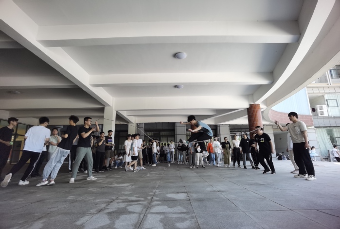 本次活动分为“跃动青春跳大绳”和“力拔山兮气盖世”两项活动。活动第一项是“跃动青春跳大绳”,分为接力跳和集体跳两部分。在平日的练习里同学们不断磨合,克服困难,在比赛中更是有条不紊,通力合作。革命先辈们团结拼搏的精神早已刻在同学们心中。