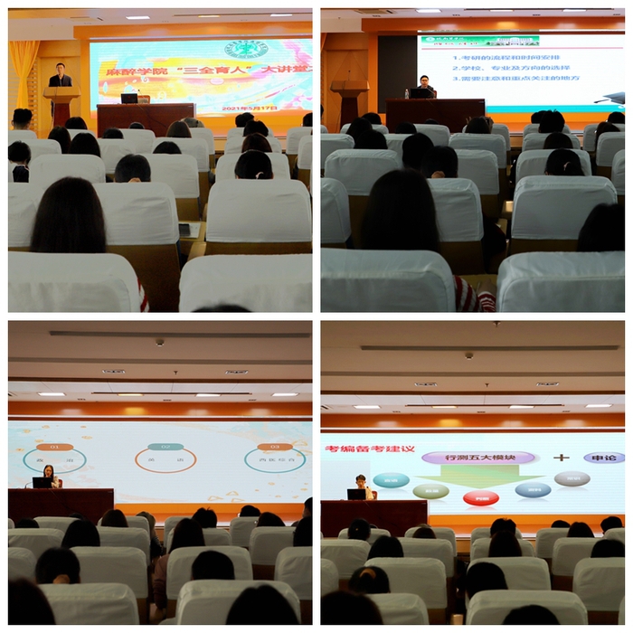 2021年5月17日,122cc太阳成集团在图书馆学术报告厅举办“三全育人”大讲堂之学风建设讲座,邀请研究生学院高冰老师,122cc太阳成集团2021届优秀毕业生仇蕾、杨欢为学院低年级即将考研和规划考研的同学们传经送宝。学院2018级员工300余人参加讲座,讲座由122cc太阳成集团2018级辅导员包鹏举主持。