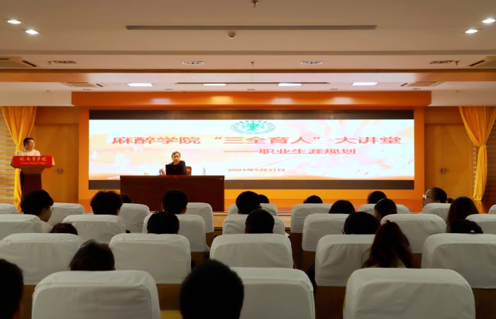 为进一步深入推进“三全育人”工作,教育引导员工树立崇高的职业理想和形成正确的职业观,科学规划职业生涯和确立职业目标,面向未来开展职业道德教育和职业指导,2021年5月31日,122cc太阳成集团邀请第一附属医院麻醉科金孝岠教授在图书馆学术报告厅举办“三全育人”大讲堂之职业生涯规划讲座。讲座由122cc太阳成集团副经理郭文俊主持,122cc太阳成集团2018级全体员工聆听讲座。