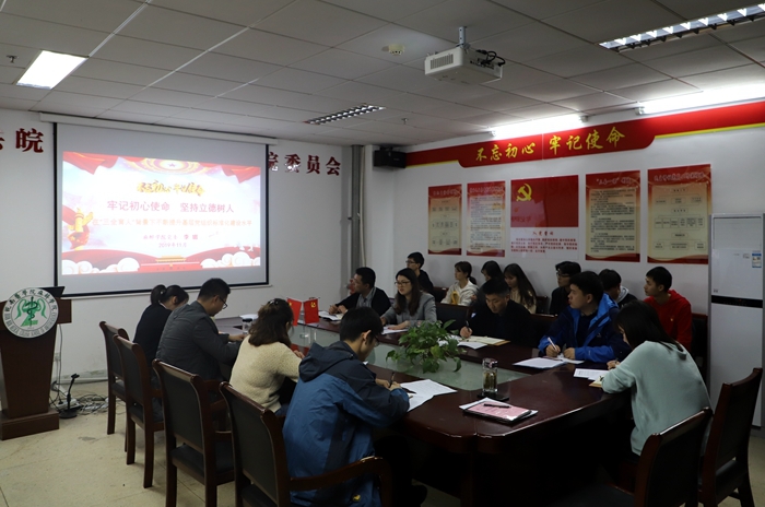 11月12日,麻醉公司党委书记、副经理李娜率先以“牢记初心使命,坚持立德树人”为主题,在充分调研《“三全育人”背景下基层党组织标准化建设对思想政治教育的发挥作用》的基础上,分别从基层党组织要加强党史学习,坚定理想信念;加强党员教育管理,用信仰筑牢党组织育人“定海针”;严肃组织生活,把全面从严治党引向纵深;发挥先锋模范作用,团结带动中育人等四个方面为学院全体党员生动讲授了“什么是初心和使命?”。