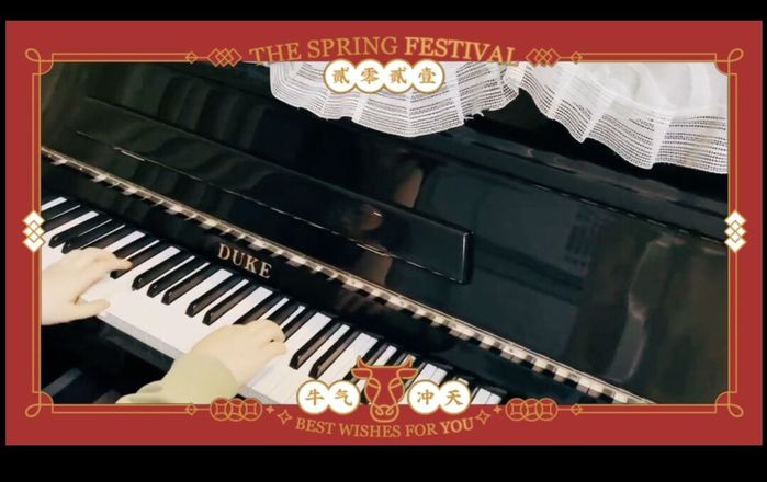 欣赏同学们的才艺表演,悠扬的钢琴声里诉说着对来年的祝福,白与黑的琴键之中奏响佳节理想。
