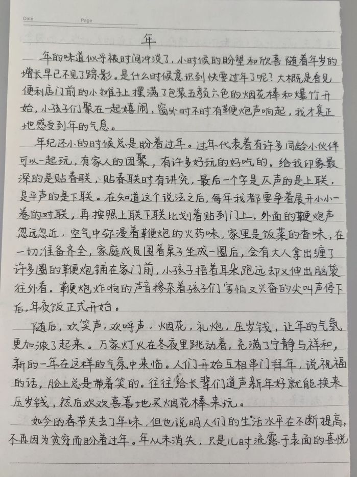 再看同学们的激扬文字,字里行间流露出对于新年到来的渴望,又描绘着对于未来的畅想,今年的春节在同学们的笔下更显可爱动人。