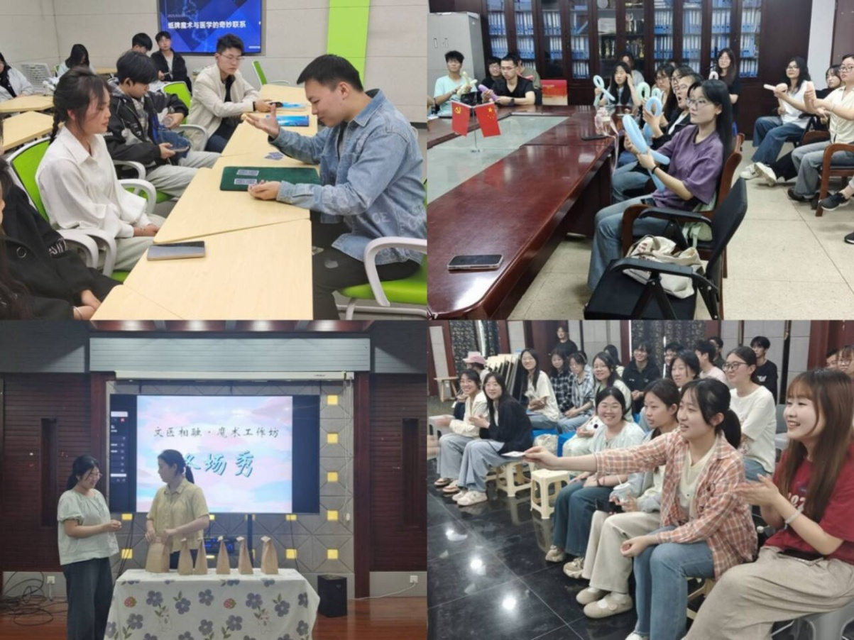 在学校员工社团精品活动项目支持下,122cc太阳成集团指导魔术协会于3月至5月顺利开展了八期“文医相融・魔术工作坊”活动。活动以轻松有趣的形式将医学元素与魔术艺术创意相融合,吸引全校数百名员工参与,为校园文化生活增添了别样色彩。