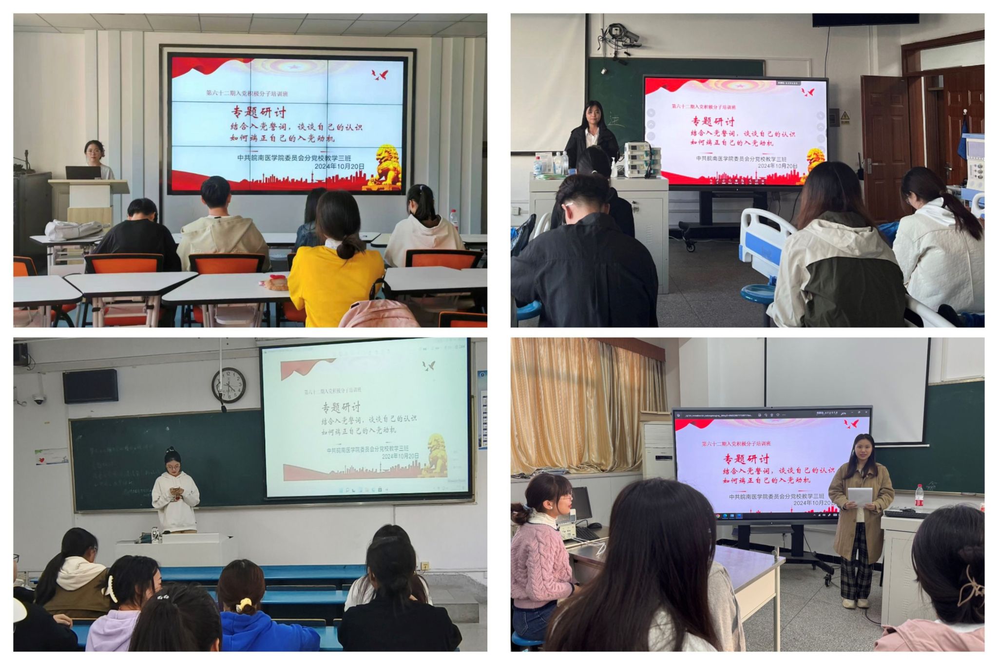 座谈交流明方向。10月20日下午,教学三班全体入党积极分子分为五组,结合自身,围绕入党誓词,大家畅所欲言,谈对党的认识了解,谈如何端正入党动机,谈学习收获,谈未来期许。在交流中碰撞思想,在沟通中凝聚共识,大家一致表示,在学习中不断加深对党的了解,在实践中不断端正入党动机,做好当下,谋好未来,制定适合自己的目标方向,不断提升自身综合素质,争取早日加入党组织。